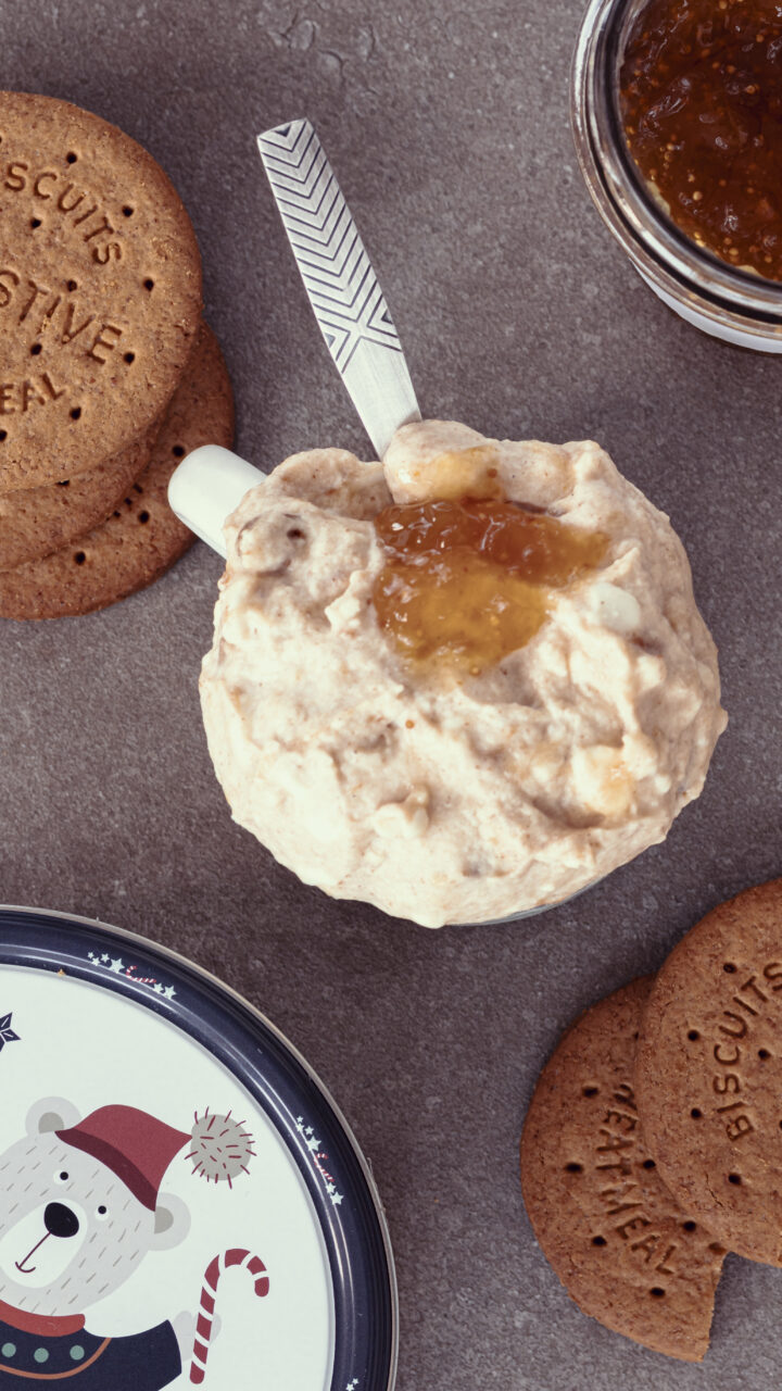 This whole-grain-infused dessert can even be compared to a more indulgent version of overnight oats and works well as a filling, protein-rich breakfast. The only difference is that you don’t have to leave it overnight—which, admittedly, can be a challenge! Still, if you have the patience (or the need) to let it rest, you can skip crushing the biscuits and instead break them into larger pieces or leave them whole, creating a layered dessert rather than mixing everything. After a few hours or overnight in the fridge, the texture becomes just as soft and smooth, with the added benefit of clearly defined layers
